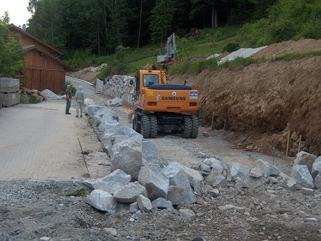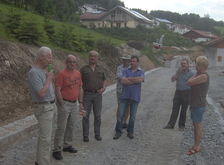 Bei einer Besichtigung der derzeitigen Baumaßnahme der Dorferneuerung, dem Ausbau des Siglweges, zeigten sich die Mitglieder im Dorfausschuss zufrieden mit dem Baufortschritt. Im Rahmen einer Ausschusssitzung konnten sich die Teilnehmer über den derzeitigen Stand informieren. Fritz Oswald, Vorsitzender dieses Gremiums und Sprecher, sprach der ausführenden Baufirma Zankl aus Viechtach ein Lob aus. Trotz des schlechten Wetters seit Baubeginn Mitte Mai, ist schon ein gutes Stück geschafft. Nach dem kurzem Abstecher im Siglweg, trafen sich die Mitglieder im Gasthof zur Sonne zu einer weiteren Besprechung. Alle wollten natürlich wissen, wie es dann im nächsten Jahr weitergeht mit der Dorferneuerung. Fritz Oswald teilte mit, dass nach derzeitigem Stand die Dorfmitte in Angriff genommen werden soll, wenn noch ausstehende Grundstückverhandlungen positiv verlaufen. Kommt es hier zu Verzögerungen, könnte ein anderer Bauabschnitt vorgezogen werden, z.B. der Ausbau des zweiten Teiles der Dorfstraße. Auf jeden Fall muss es im nächsten Jahr weitergehen, waren sich alle einig.