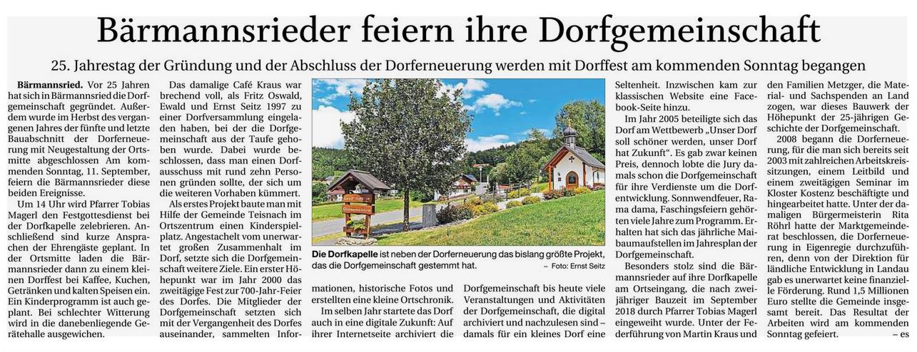 Aus dem Viechacher Bayerwald Boten vom 6. September 2022...