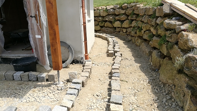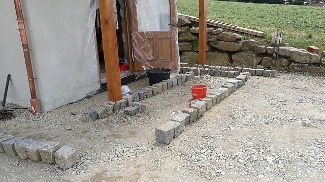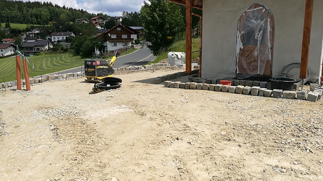 Die Außenanlagen wurden für die Pflasterarbeiten vorbereitet und planiert. Außerdem konnte die Installation von Elektroarbeiten fortgesetz werden, so dass nun innen verputz werden kann.