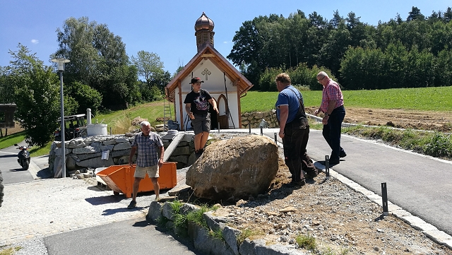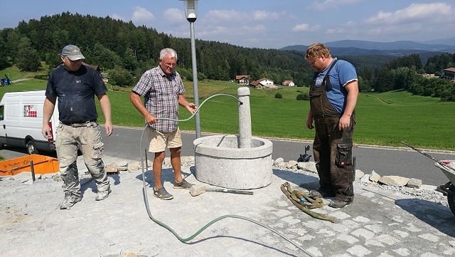 abgeschlossen werden. Der Granitbrunnen steht nun an seinem endültigem