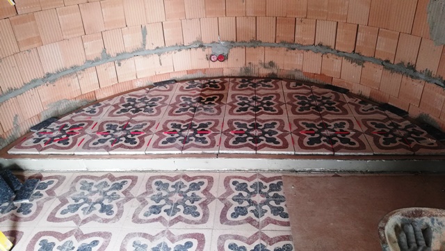 Der Bodenbelag im Altarbereich wurde vorbereitet und auf Maß