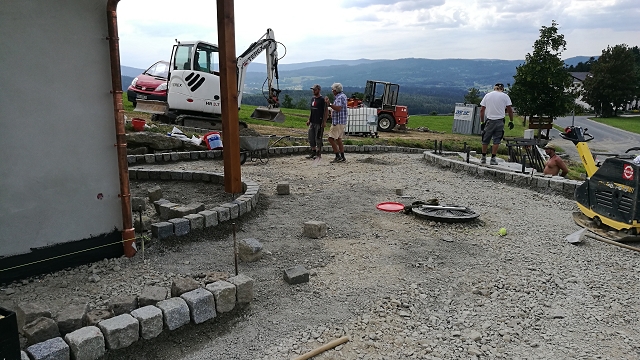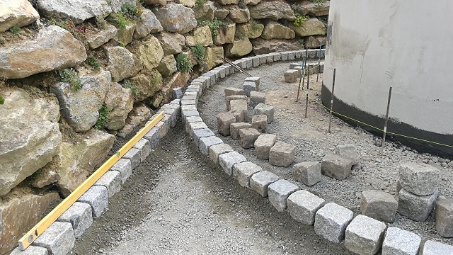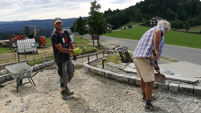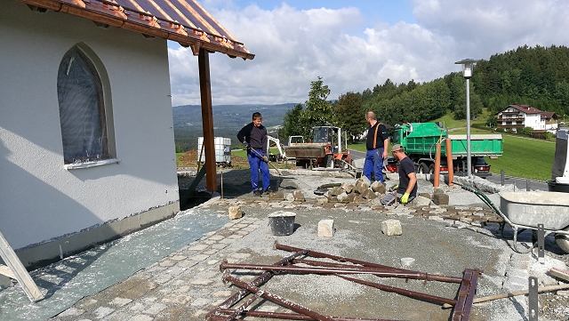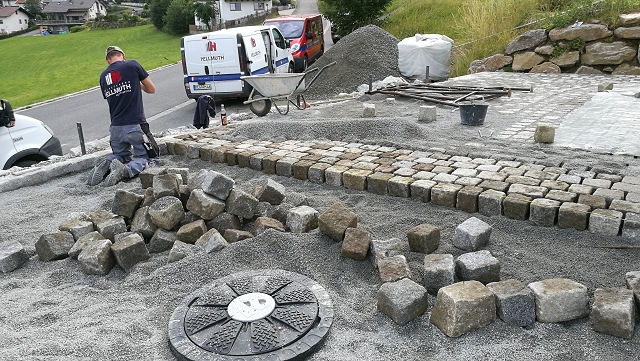 Pflasterbaufirma Hellmuth aus Patersdorf ist angerückt und pflastert mit