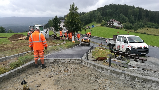 würde. Eine Teerkolonne der Firma Streicher hat den Gehweg zur