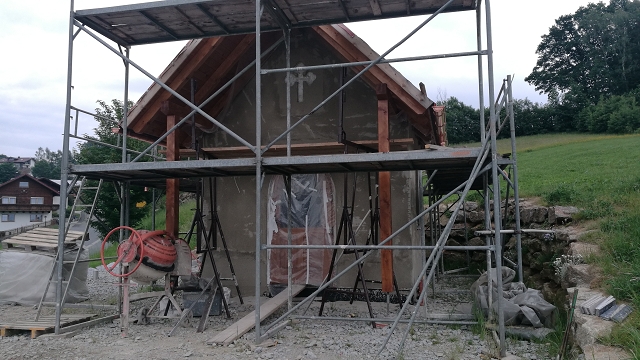 Die Verputzarbeiten an der Außenwand der Dorfkapelle konnten kurzfristig erledigt werden.