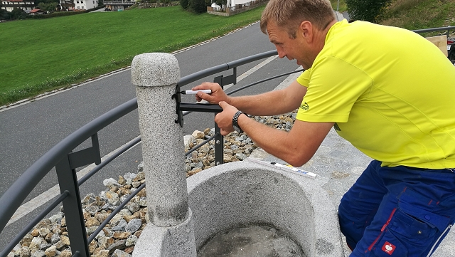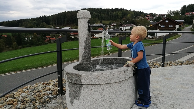 Granitbrunnen angeschlossen worden, gespeist mit dem Regenwasser aus der