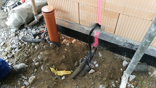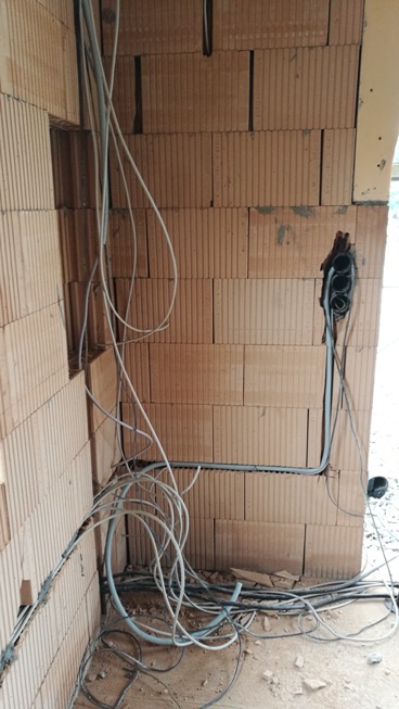 angelaufen. Die elektrischen Leitungen für Steckdosen, Schalter, Lampen