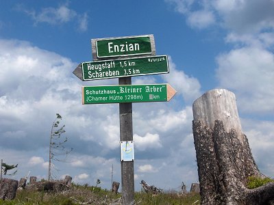 Nach rund 3 Kilometern ist das Ziel, der 1285 Meter hohe Enzian, auf einem schönem Wanderpfad erreicht. Der Rückweg führt über die gleiche Strecke wieder zurück nach Lohberg - Schwarzenbach.